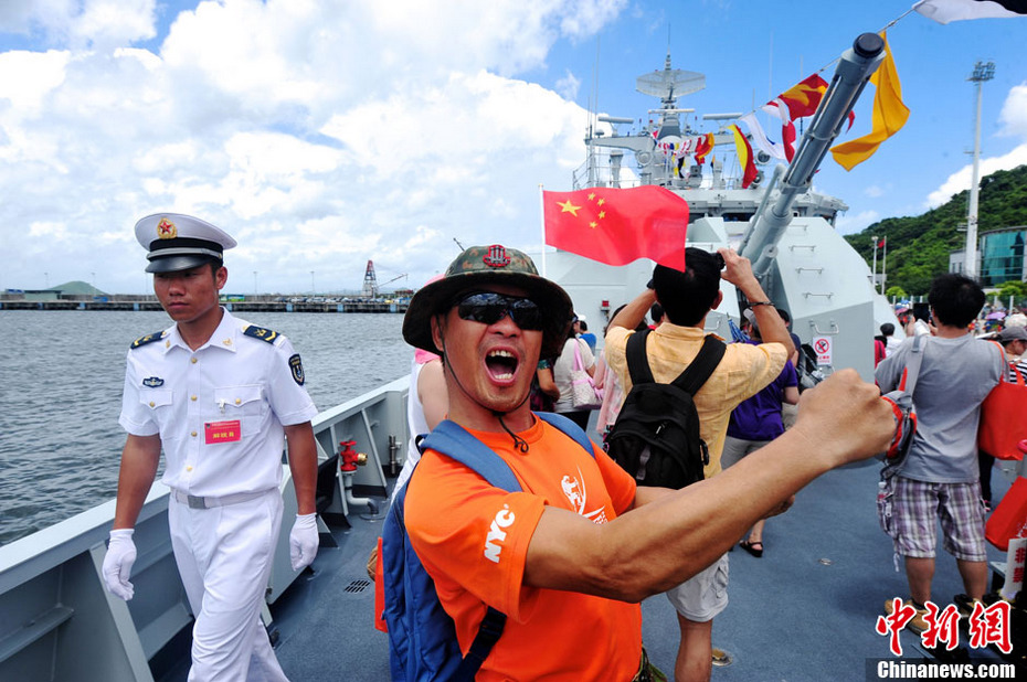 图为香港市民登上056舰参观留影。