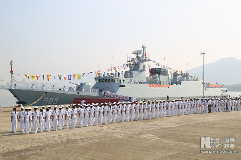 2013年10月12日,056型导弹护卫舰585号“百色舰”入列命名仪式在南海舰队三亚某基地军港隆重举行。