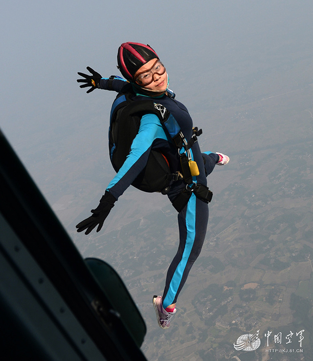 身手好胆也大:八一跳伞队员空中“摆拍”