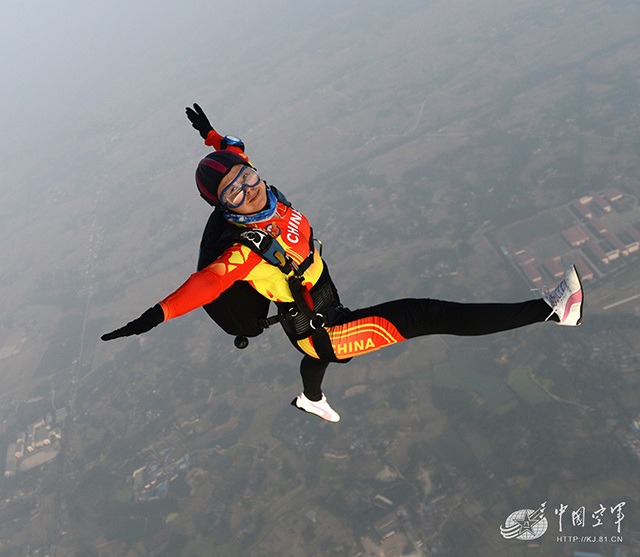 身手好胆也大:八一跳伞队员空中“摆拍”