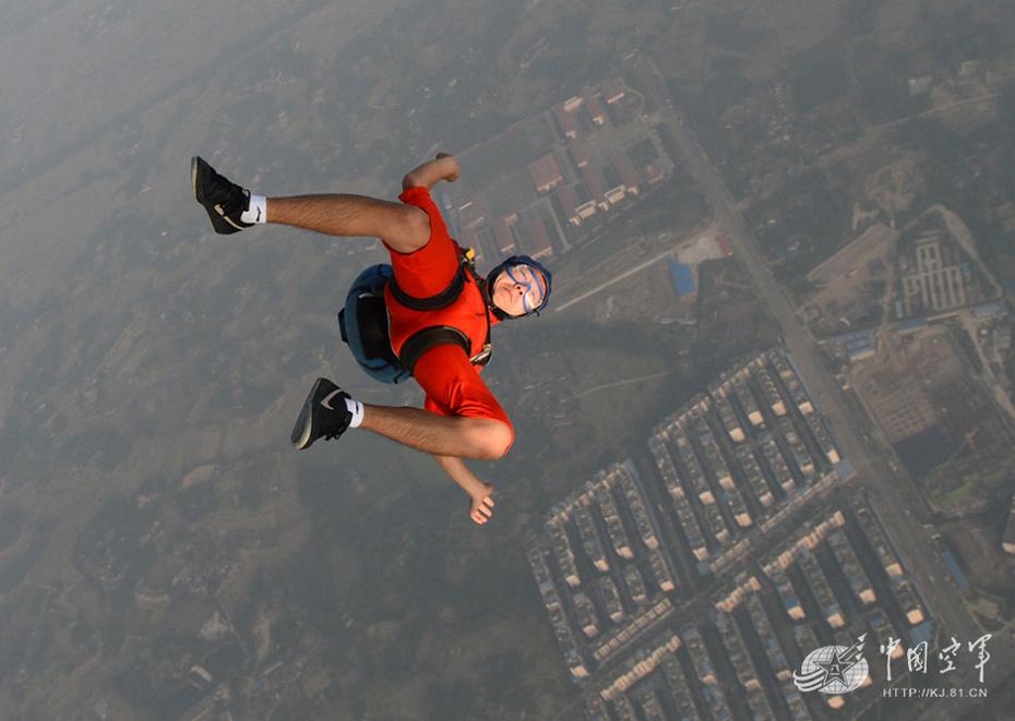 身手好胆也大:八一跳伞队员空中“摆拍”