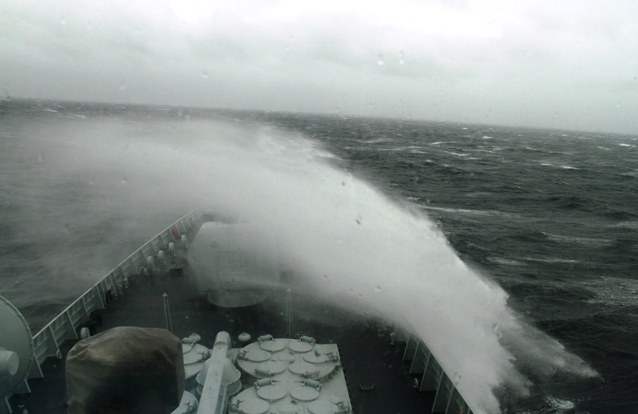 编队在麦哲伦海峡西侧入口处遭遇大风浪。何得志 摄