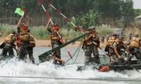 参演部队架设浮桥。解放军报记者 李 靖摄