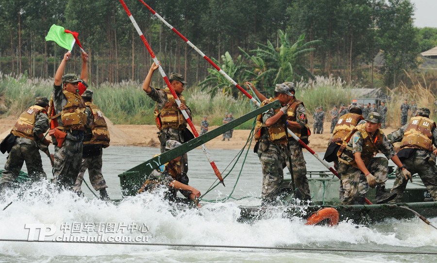 直击解放军4万人大演习:架浮桥运送兵力