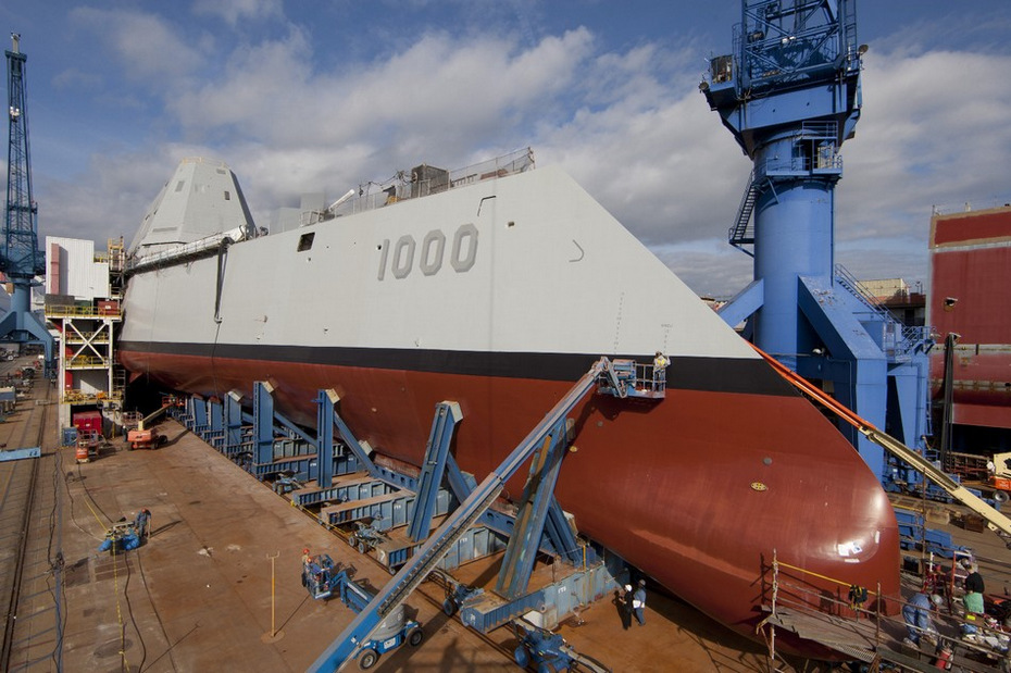 DDG—1000是迄今为止美国海军制造的最大驱逐舰,舰长约183米、排水量近1.5万吨。由于这艘驱逐舰过于庞大,巴斯铁工厂不得不耗资4000万美元建造了一座高32米的建筑,以便组装其庞大船体的各个部分。虽然该级舰的长度和重量超过了所有现有驱逐舰,但由于使用自动系统,其船员数量仅140人,约为一般驱逐舰船员数量的一半,这不能不说是一大奇迹。