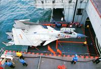 歼15舰上训练再曝猛图 上辽宁舰升降机