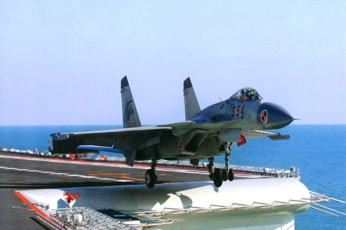 歼15舰上训练再曝猛图 上辽宁舰升降机