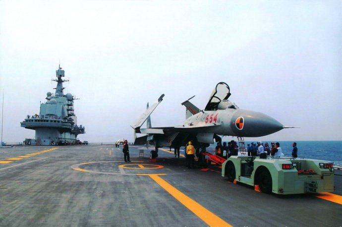 歼15舰上训练再曝猛图 上辽宁舰升降机