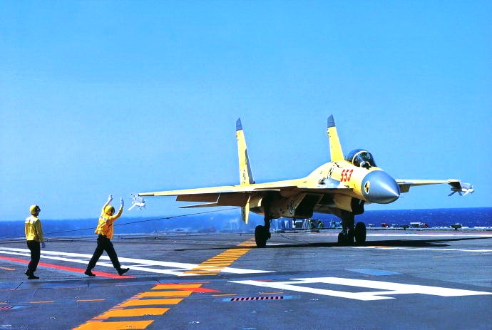 歼15舰上训练再曝猛图 上辽宁舰升降机