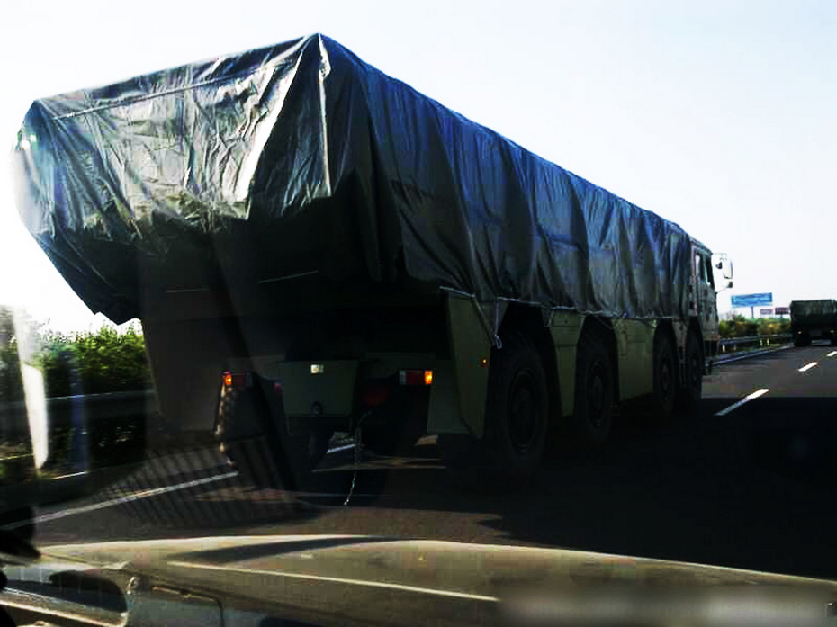 只要命中一枚鹰击-18,其巨大的3倍音速冲击力和近300公斤的高爆能量,就足以使一艘“宙斯盾”战舰丧失作战能力。据称,该弹还具有反辐射功能,即使在距敌舰50米处爆炸,也可摧毁60%的敌方舰载电子系统。图为络上出现的疑似鹰击-18导弹发射车(或运载车)。