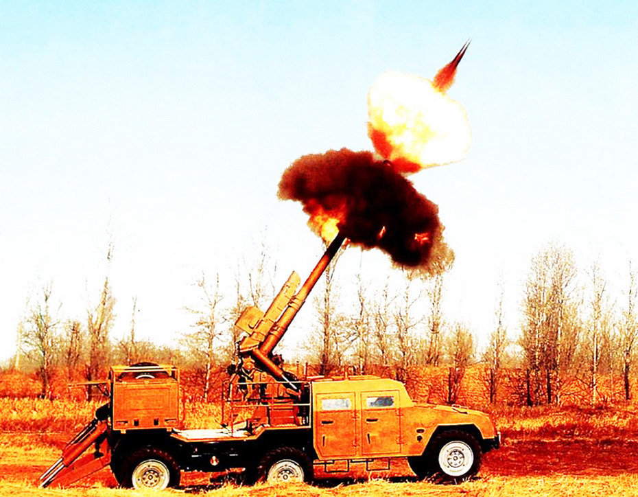 SH-5型105毫米车载榴弹炮战斗全重小于11吨,携弹量40发。具有在行进方向高低角零度射击功能,最大射速8发/分,最大射程达18.2千米(底排弹),采用6×6越野卡车底盘,发动机功率为160千瓦,最大公路行驶速度可达100千米/小时。底盘采用前后轴转向,转弯直径小于13米,并配有轮胎中央充放气系统。最小离地间隙大干400毫米,涉水深米,越野能力强。火炮的信息化程度高,行军/战斗转换时间小于45秒。