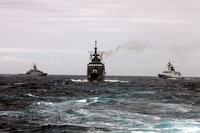 编队出港后,与巴西海军“宪法号”护卫舰、“阿帕号”巡逻舰,以及巴海军2架直升机、2架攻击机进行了联合演习,双方按照预案开展了编队运动、补给、协同防空、直升机互降等科目的演练,并互派观察员赴对方指挥舰观摩了演习的整个过程。