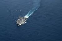 据美国海军网报道,当地时间10月24日、25日两天,美国海军华盛顿号核动力航空母舰在中国南海海域进行了舰载机起降训练,期间还与马来西亚海军进行了联合演习。美国海军网称,华盛顿号航母是在执行例行巡逻任务,以保证美国及其盟友在印度-亚太区域的海上利益。(来源:环球网)