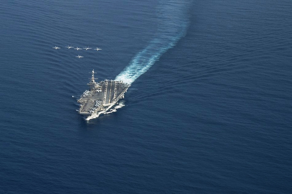 美航母编队在中国南海游荡 频繁起降舰载机