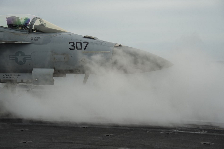 24日,美国海军华盛顿号航母进行舰载机起降训练。