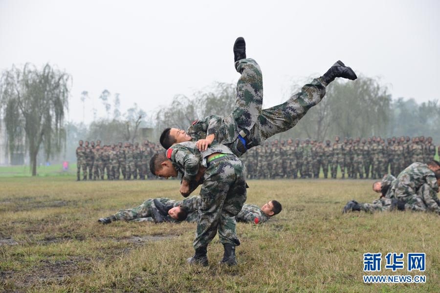 中方参训士兵演示搏击术 王德思摄