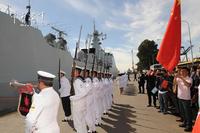 伴随着军乐声,我海军舰艇编队解缆起航,缓缓驶离码头。官兵们在甲板上分区列队,向欢送人群挥手告别。中国驻阿根廷大使馆、武官处人员、华人华侨,阿根廷海军官兵代表到场送别。