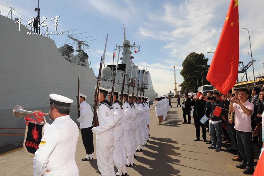 编队起航前,阿海军官兵代表、中级机构、华人华侨等到码头送行。曾行践 摄