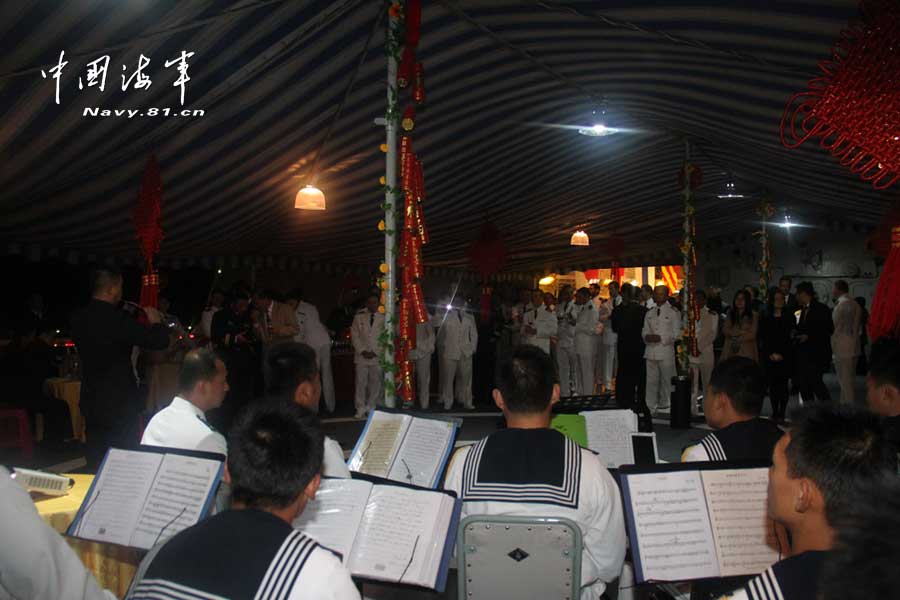 编队在兰州舰举行了甲板招待会。何得志 摄