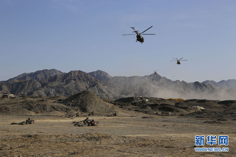新疆军区武直成群出动 发射导弹点穴式打击