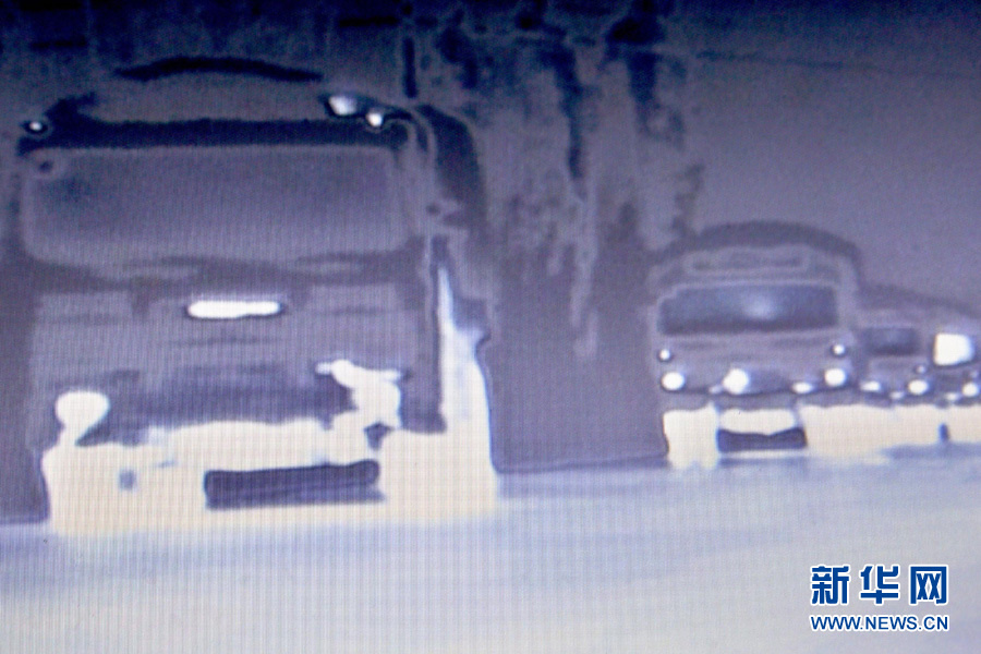 利用热成像仪拍摄的梯队闭灯行军画面