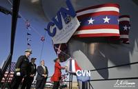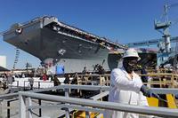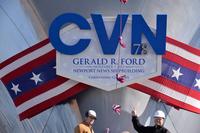 美军最新一艘超级航空母舰“杰拉尔德·福特”号9日在弗吉尼亚州纽波特纽斯亨廷顿英戈尔斯公司造船厂举行正式命名仪式,标志着这艘航母下水投入使用。 命名仪式上,参议院军事委员会主席卡尔·莱文发表讲话说,作为美军的主力战舰,航空母舰代表着美国的军事力量,投射着美国的影响力。