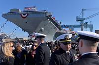 “杰拉尔德·福特”号根据前总统杰拉尔德·福特之名命名。在莱文讲话结束后,福特之女苏珊·福特·贝尔斯在舰头处打碎一瓶气泡酒,完成仪式。