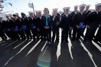 11月9日,在美国弗吉尼亚州纽波特纽斯亨廷顿英戈尔斯公司造船厂,人们参加美军航母“杰拉尔德·福特”号(CVN 78)的命名下水仪式。美军最新一艘超级航空母舰“杰拉尔德·福特”号(CVN 78)当日举行正式命名仪式,标志着这艘航母正式下水。“杰拉尔德·福特”号根据前总统杰拉尔德·福特之名命名。在莱文讲话结束后,福特之女苏珊·福特·贝尔斯在舰头处打碎一瓶气泡酒,完成仪式。(来源:人民网)