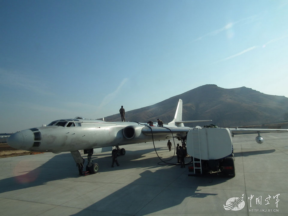 中国空军秀猛照:轰油6罕见空中紧急放油