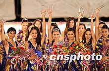 2003年新丝路模特大赛总决赛十四日晚在三亚天涯海角举行,五十一名佳丽参加角逐。来自湖南的肖青获得冠军,谷雨、姚瑶获得 亚军,罗君、张小雯以及来自台湾的吴育臻获得季军。 (点击图片看大图)