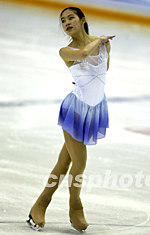 澳门运动员张娜燕参加中国第十届冬季运动会花样滑冰女子单人滑表演自由滑比赛,赢得全场观众的热烈掌声。