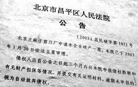 当记者小心翼翼地提出“破产”二字时,北京王麻子剪刀厂厂长崔月禄讲述了“王麻子”破产的来龙去脉。“‘王麻子’破产并不是外人想象的,王麻子工厂不干了,‘王麻子’这个牌子也没了”,崔厂长一再强调,破产后“王麻子”这个牌子不会消失。
