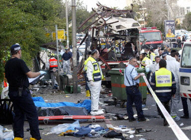 中新网3月6日电 以色列海滨城市海法5日下午发生的公共汽车自杀炸弹爆炸事件,已造成15人丧生,40余人受伤。