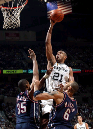 这场比赛也被认为是两队领袖人物邓肯和基德的强者对话。在东部决赛中横扫底特律活塞的篮网,已是10天无战事,周三的比赛中显露出状态欠佳。