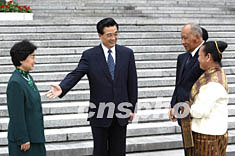 组图:胡锦涛欢迎老挝国家主席坎代·西潘敦