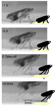 沫蝉的平均长度约为6毫米,但它能跳700毫米高。沫蝉在起跳前双腿固定蓄力,起跳的初始速度为每秒3.1米,三倍于跳蚤的起跳速度。沫蝉起跳时承受的重力约为其体重的400倍。而有经验的喷气式飞机的驾驶员在起飞时最多只能承受其体重7倍的重力。(春风)