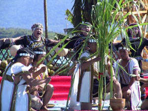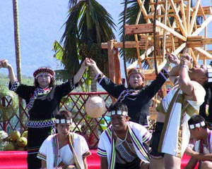 台湾少数民族海南参访活动在夏日细雨蒙蒙的保亭县城拉开帷幕。热情好客的保亭黎苗少数民族吹起牛角,鸣响粉枪,向远道而来的近八十位台湾少数民族贵客洒下点点吉祥水,献上串串槟榔果,敬上一杯杯山兰酒。