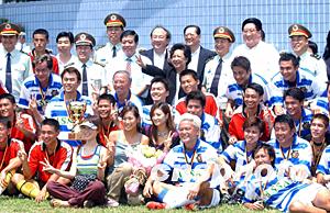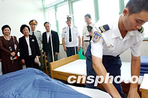 探访团成员和嘉宾上午首先观看了驻军足球队和香港明星队进行的一场精彩的足球友谊比赛,结果驻军足球队以六比三胜出。此外,他们还欣赏了军乐队员的演奏、侦察兵的捕俘拳、捕俘刀、擒拿与反擒拿等表演,参观了舰艇大队和模拟训练中心。