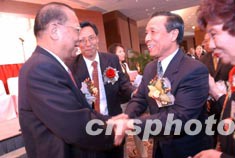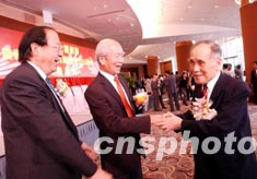 香港知名人士庄世平【左】、全国人大委员邬维庸【右】,出席国庆酒会。