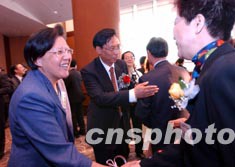 香港著名艺人李香琴[右]、知名人士邱德根等文化艺术界知名人士出席国庆酒会。