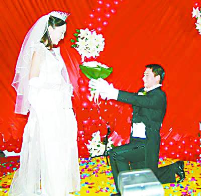 新娘张倍宁是一位歌手,当主持人问到新娘最满意自己演唱的歌曲是什么名字时,她回答:“爱我的人请举手”,新娘的话音刚落,李小双就将自己的左手举了起来,博得了在场亲朋好友的一阵热烈掌声。