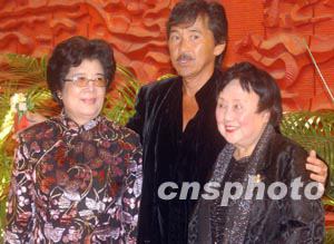 香港明星林子祥日前陪同母亲(右)和二婶一起出席在香港举行的2003年度CASH金帆音乐奖颁奖典礼。 中新社记者:钱兴强