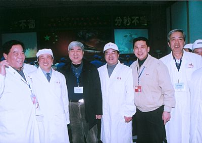 “神舟”飞船发射成功,张庆伟与袁家军等人合影。(中国航天科技集团供图)