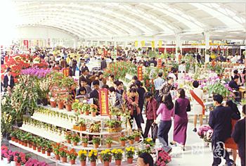 2001年第三届海峡两岸花博会花卉交易中心人头攒动。林忠摄