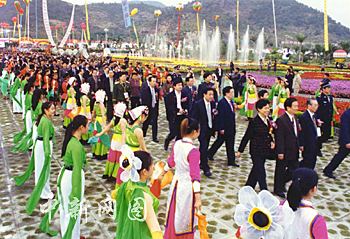 全国政协副主席张克辉等领导出席2001年第三届海峡两岸花博会。林忠摄