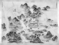 《广州府舆图》长66.5厘米,宽49.5厘米,彩色绢本,看起来与现代地图有很大区别。采用立体写景法,山峰着蓝绿色,山上树木绘画细腻,水道绘有波纹,就像一幅山水画。从地图可见,清代的广州城,北靠越秀山,南临珠江,面积不过10平方公里,而且整个珠江上没有一座桥。广州的南面及西面几乎没有山,但《广州府舆图》却在这些方位画满了山,仔细一看,连西樵山都在内。中国第一历史档案馆副馆长朱秉洁告诉记者,这是由于当时绘画地图采用的是示意图法,只是表达了大致方位。
