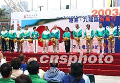 2003/2004港岛、九龙区百万行公益金筹款活动十二月七日在香港大球场举行起步礼,香港特别行政区行政长官董建华和夫人等出席剪彩仪式。中新社记者:钱兴强