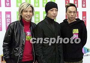 组合Beyond三子(叶世荣、黄贯中、黄家强)12月18日在香港出席商业电台《2003年度叱咤乐坛流行榜颁奖典礼》抽签仪式,Beyond与Twins及at17为「叱咤乐坛我最喜爱的组合」最后三强。作者:邓庆乐