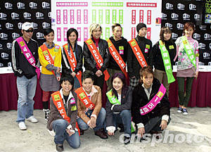 众歌星、组合12月18日在香港出席商业电台《2003年度叱咤乐坛流行榜颁奖典礼》我最喜爱的男歌手、女歌手、组合抽签仪式。作者:邓庆乐