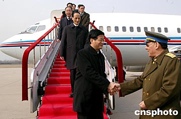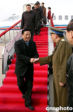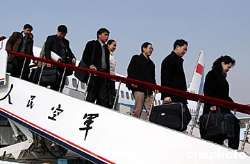 参加全国“两会”的人大安徽代表团三月二日乘专机抵达北京西郊机场。中新社记者:张宇